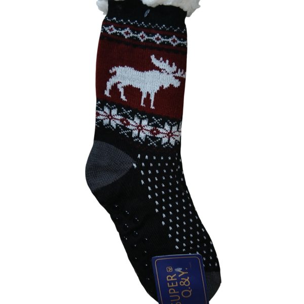 Αντρικές Καλτσοπαντόφλες Με Χνουδωτή Επένδυση Αντιολισθητικές Μαύρο με Σχέδιο Τάρανδο