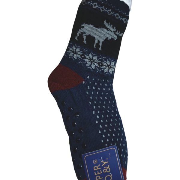 Αντρικές Καλτσοπαντόφλες Με Χνουδωτή Επένδυση Αντιολισθητικές Σκούρο Μπλε με Σχέδιο Τάρανδο