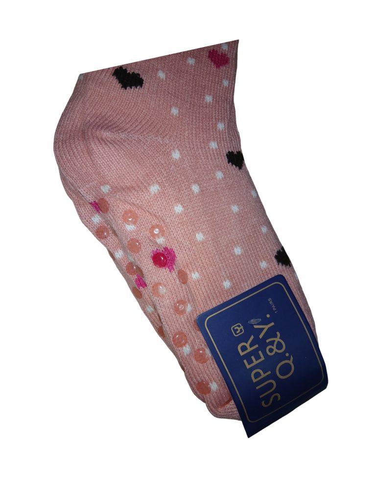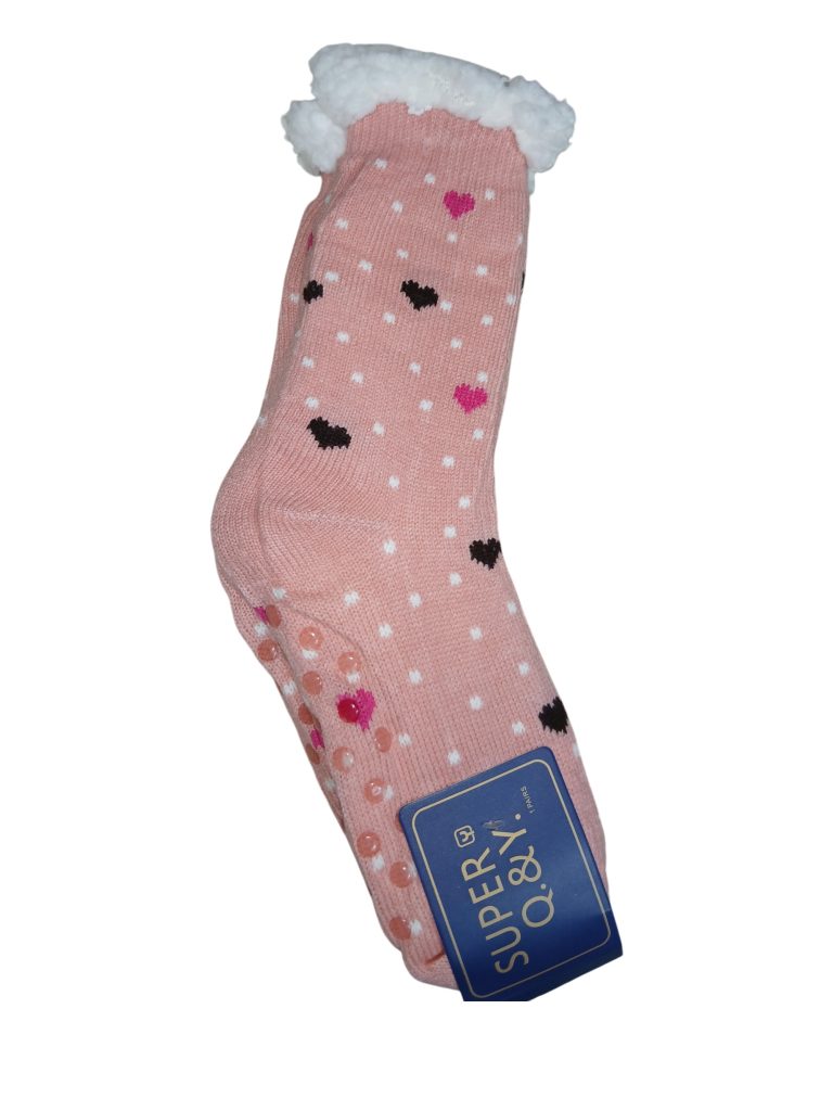 Γυναικεία καλτσοπαντόφλα Με Χνουδωτή Επένδυση Αντιολισθητικές Ροζ Με σχέδιο Καρδιές 36-41