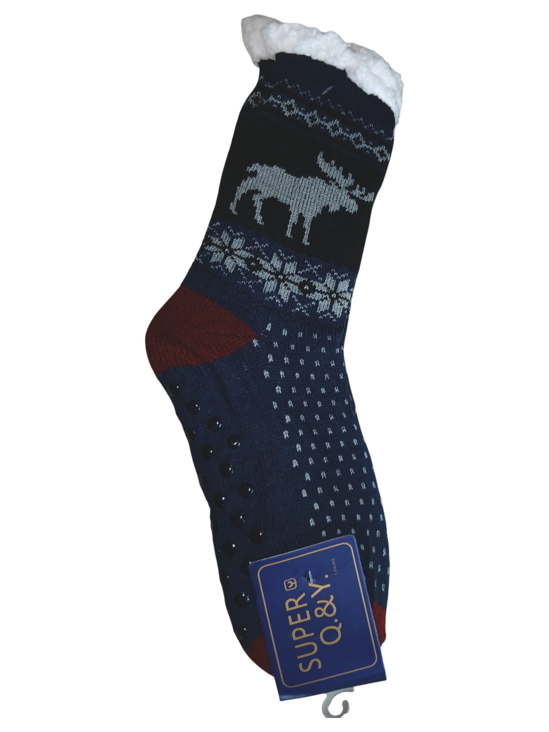 Αντρικές Καλτσοπαντόφλες Με Χνουδωτή Επένδυση Αντιολισθητικές Σκούρο Μπλε με Σχέδιο Τάρανδο