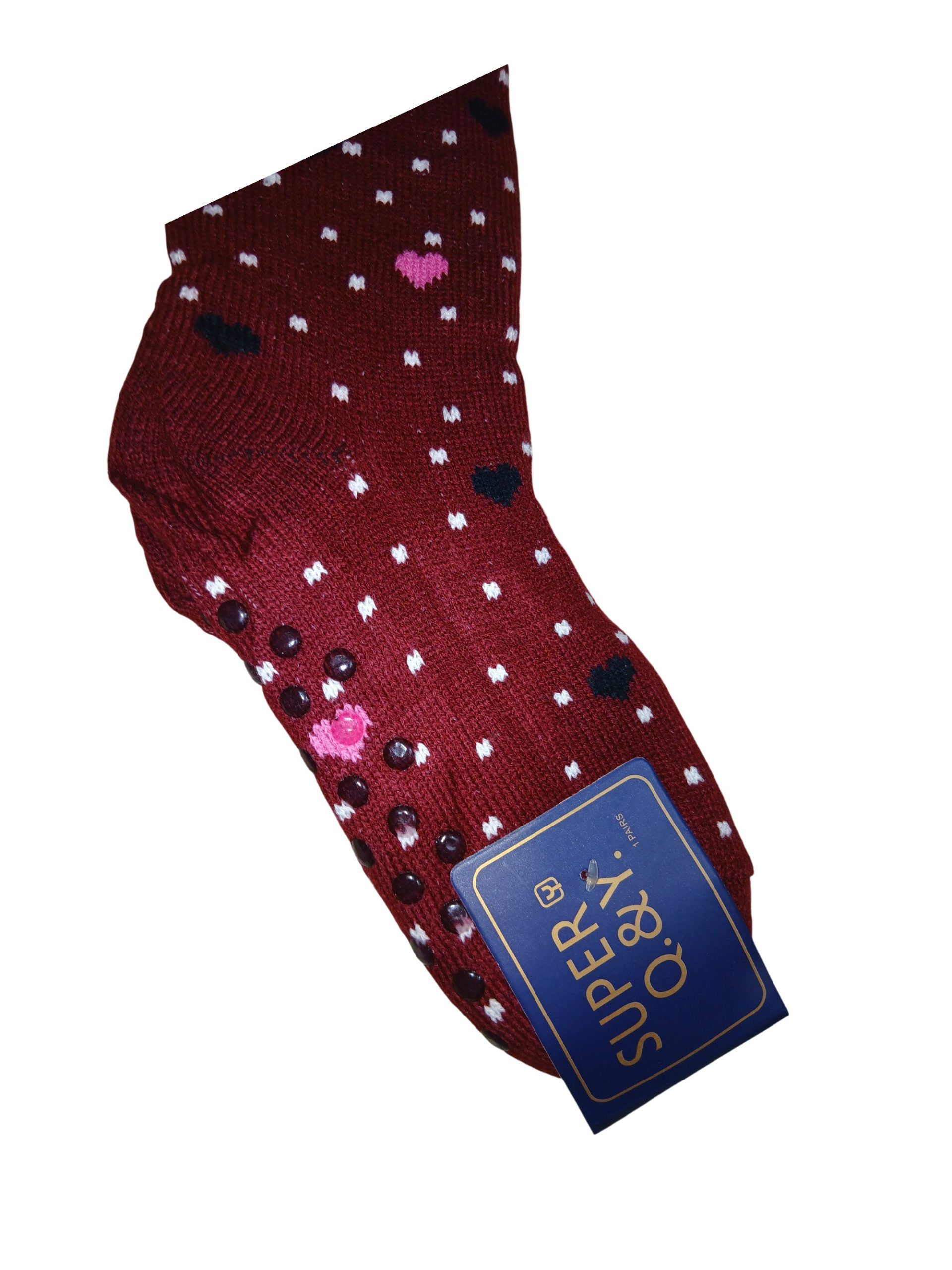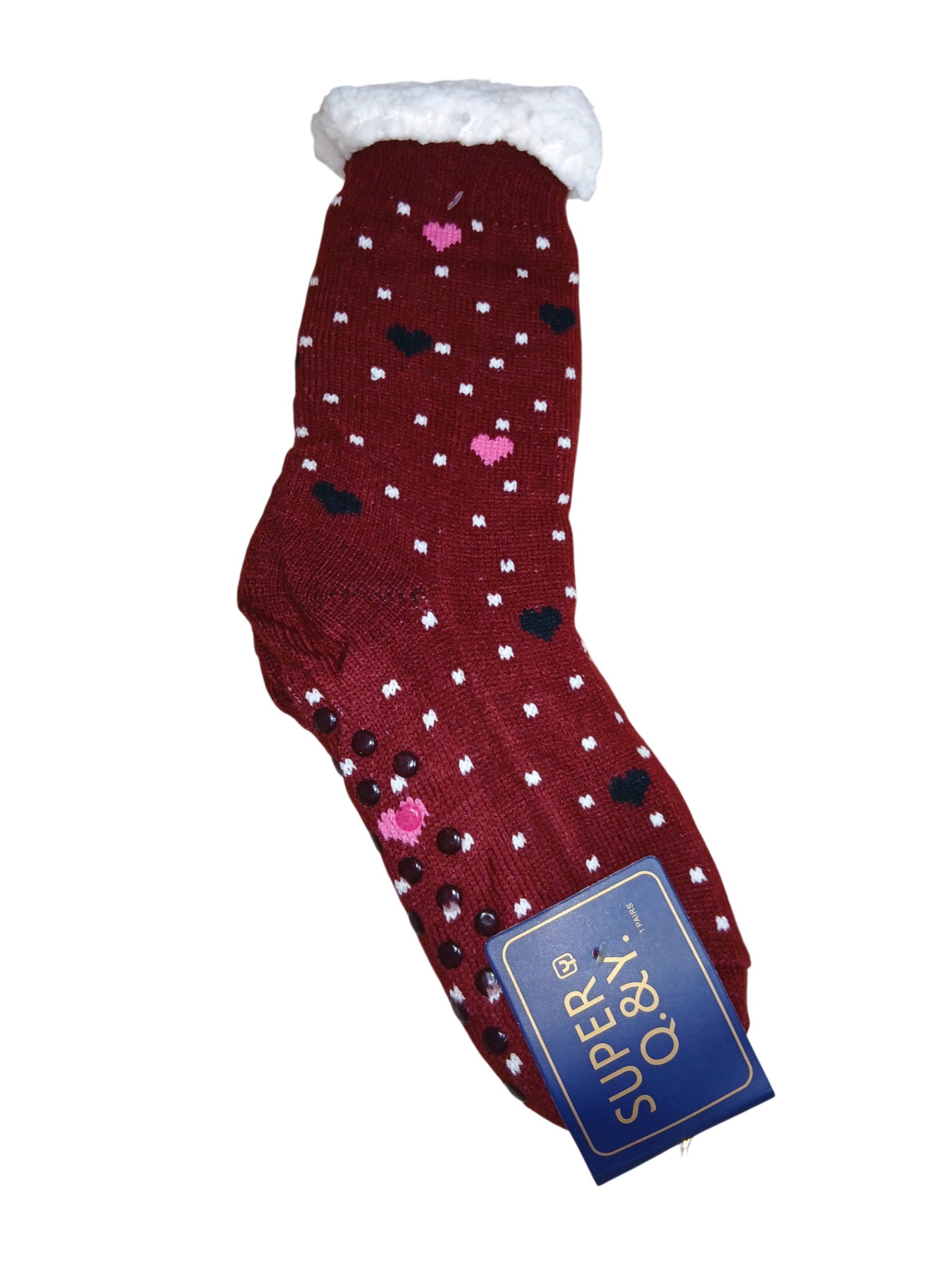 Γυναικεία καλτσοπαντόφλα Με Χνουδωτή Επένδυση Αντιολισθητικές Μπορντώ Με σχέδιο Καρδιές 36-41