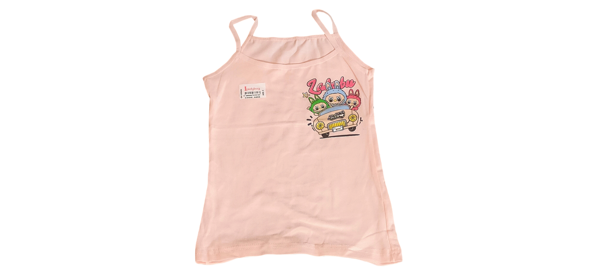 Παιδικό φανελάκι με λεπτό τιραντάκι με σχέδιο του αγαπημένου χαρακτήρα Labubu! Κατασκευασμένο από βαμβάκι, είναι απαλό, δροσερό και φιλικό προς το παιδικό δέρμα. Οι λεπτές τιράντες και η άνετη εφαρμογή το καθιστούν ιδανικό για κάθε μέρα.